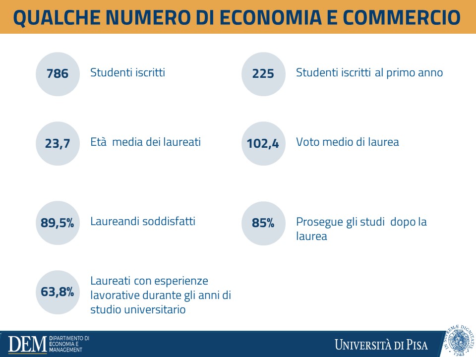 Ti interessa capire come funziona l’economia nel suo insieme e come persone, imprese e istituzioni prendono decisioni? Scienze economiche è il curriculum adatto a te. Fornisce le conoscenze, sia di tipo microeconomico che di tipo macroeconomico, fondamentali per interpretare i fenomeni economici reali. Al termine del percorso avrai acquisito anche gli strumenti analitici necessari all’elaborazione dei modelli teorici ed alla loro validazione empirica.
